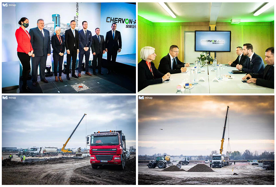 At 9:45 am Hungary time on November 18, 2021, Chervon Auto held its groundbreaking ceremony for its manufacturing facility in the Mechatronics Park in Miskolc. H.E. Minister Péter Szijjártó, the relevant government officials of Hungarian Investment and Promotion Agency and Hungarian Parliament, Mayor of Miskolc Mr. Pal Veres; Project Manager of Chervon Auto Europe project Mr. Simon Waechter; General Manager of Chervon Auto Europe Kft. Mr. Gaal Gyula and representatives of partners related to the Europe project of Chervon Auto attended the ceremony.